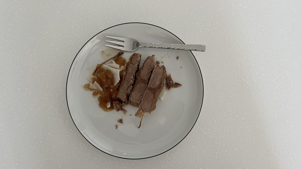 Další velmi jednoduchá věc na přípravu. Maso osolím a hodím do trouby na 140 stupňů, jinak se o něj vůbec nestarám a nechám ho v klidu 7-9 hodin, když ho vytáhnu, je jako dort.