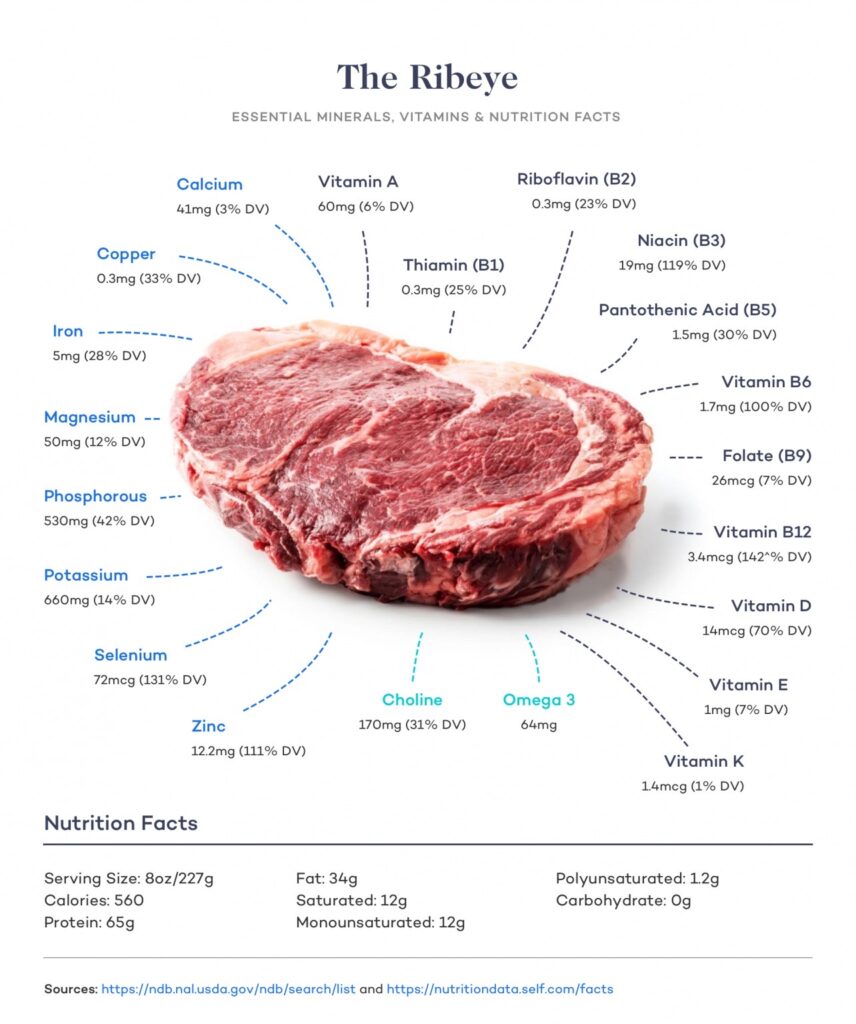 Typická maso-ovocná dieta pořád stojí na konzumaci tučného masa. Přestože si můžeš vybrat mezi hovězím, zvěřinou, vepřovým, drůběžím a rybami, králem je pořádně prorostlý ribeye steak.